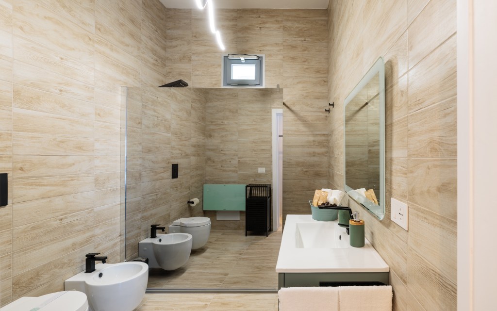 Il bagno, ampio e confortevole, è dotato di una doccia emozionale che rende ogni utilizzo un’esperienza sensoriale unica.