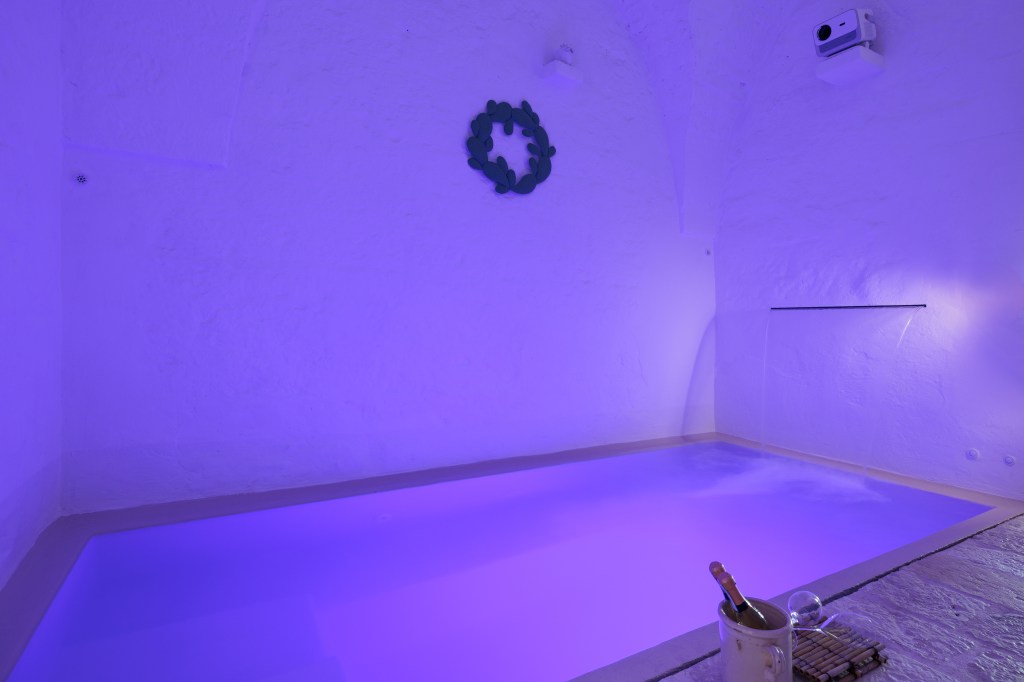 Una stanza dedicata alla piscina riscaldata, completa di cascata e idromassaggio, dove potrete rilassarvi e rigenerarvi.